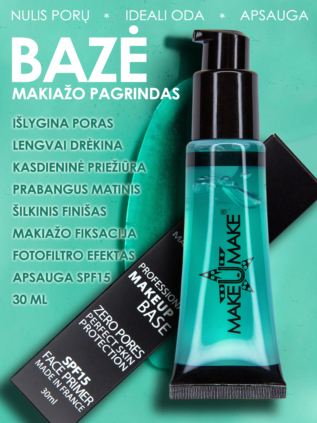 Priemonė maskuoja poras, sugeria odos riebalų perteklių, drėkina bei fiksuoja makiažą.