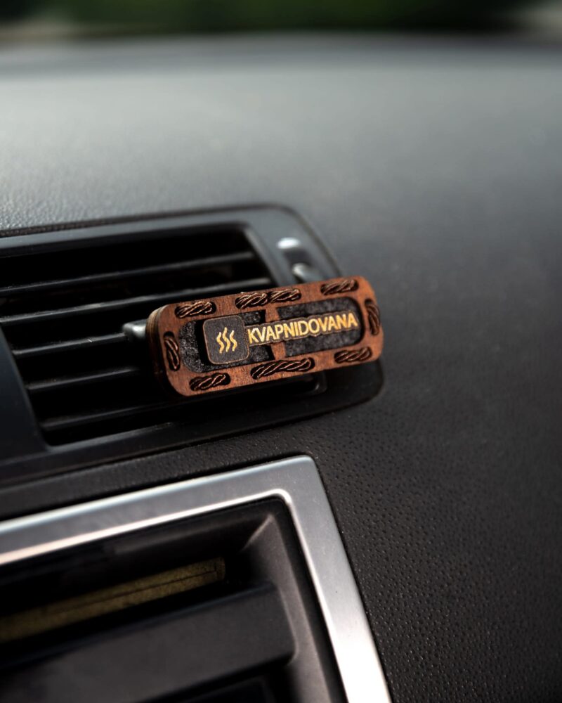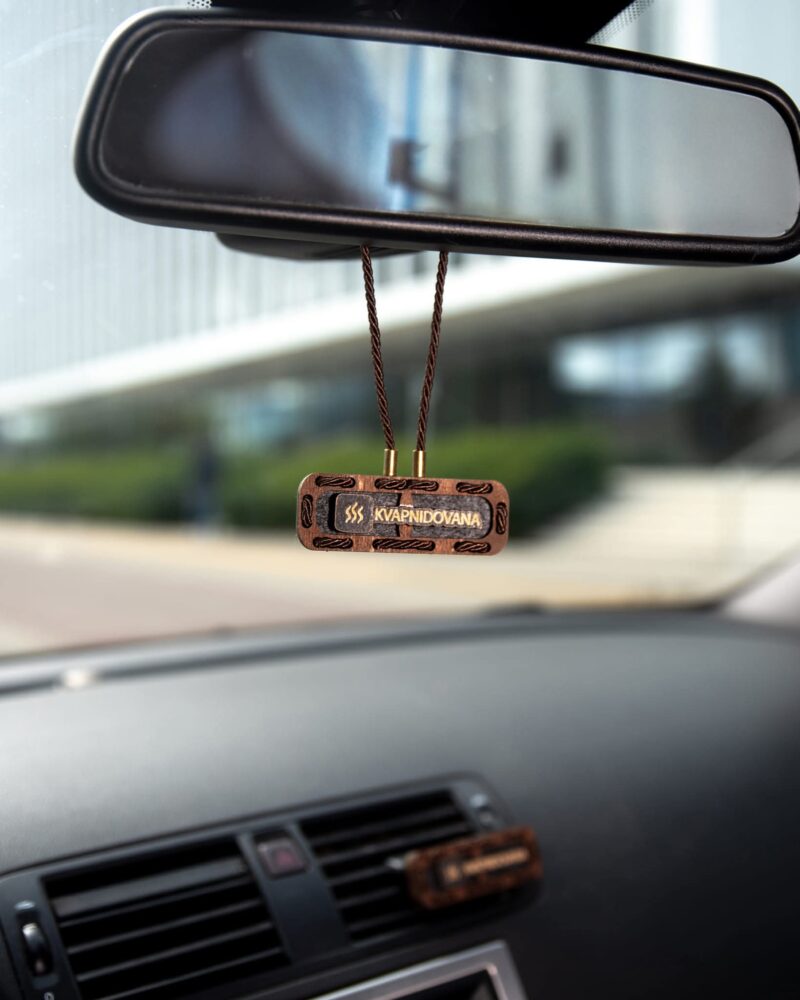 Autentiškas rankų darbo kvapas automobiliui, kurį galima tiek pakabinti ant galinio vaizdo veidrodėlio, tiek įstatyti į groteles su magnetais.