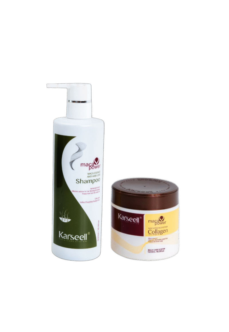 „Karseell“ plaukų kaukė ir šampūnas nuo slinkimo – profesionali plaukų priežiūros priemonė, sukurta stiprinti plaukus nuo šaknų iki galiukų ir stabdyti jų slinkimą. Formulė su „Maca essence“ ekstraktu maitina, drėkina ir atkuria plaukų struktūrą, suteikdama jiems tankumo ir sveiko žvilgesio. Be parabenų, sulfatų ir fosfatų – tinka tiek moterims, tiek vyrams.